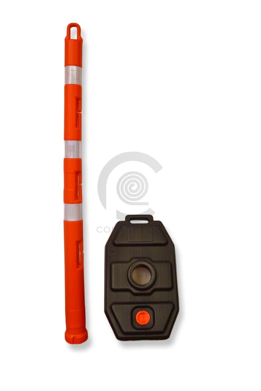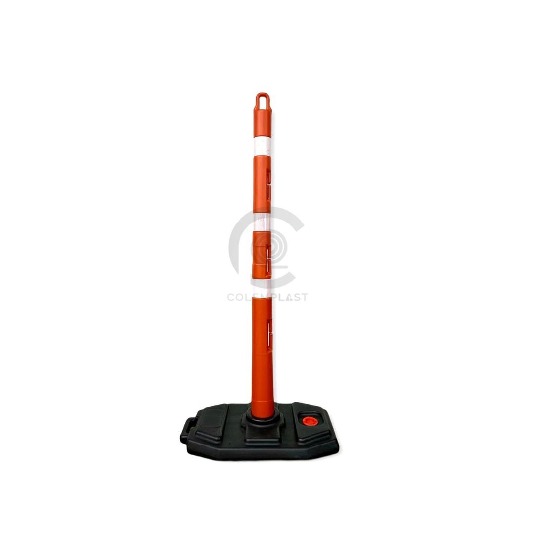 La colombina plástica, o señalizador tubular, de color naranja con base plástica negra y reflectivos, es una herramienta crucial para mejorar la visibilidad y seguridad en diversos entornos. Estos señalizadores se utilizan ampliamente en carreteras y otros lugares para indicar direcciones, marcar obstáculos y delinear áreas de trabajo durante la construcción o eventos.