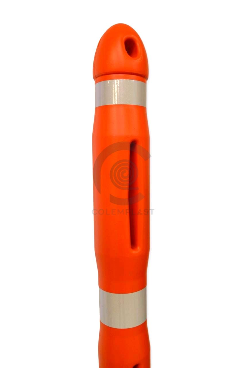 La colombina plástica, o señalizador tubular, de color naranja con reflectivos, es una herramienta esencial para mejorar la visibilidad y seguridad en diversos entornos. Estos señalizadores se utilizan ampliamente en carreteras y otros lugares para indicar direcciones, marcar obstáculos y delinear áreas de trabajo durante la construcción o eventos.